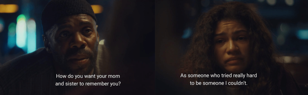 It was certainly a risky change of pace for the show which is usually so relentless with jaw-dropping camera work and a music video-esque editing style where they employ quick cuts from scene to scene, but the end result paid off. Without the lavish aesthetics of the show, the result was an episode that was stripped down to its very core and it didn’t buckle under the pressure of being laid bare. There was no flashy cinematography and make-up to hide behind, and even the soundtrack was used sparingly, though it still remained an integral part of the story the way it was in the first season with the episode being closed off by a heart-breaking rendition of ‘Ave Maria’ from the show’s composer Labrinth. At its heart, Euphoria is a show that seeks to enlighten audiences on the struggles of today’s youth and invites us to feel something as per the show’s tagline, but in the first season I felt that sometimes that message got drowned out by everything else happening around it—the sometimes overwhelming aesthetics, the multiple narratives the show tries to balance at once, the shock-value esque imagery. With all of that removed, the show had room to breathe and explore the disease of addiction and mental health in general in a measured, deliberate way. And whilst the idea of a conversation about addiction between two characters for 45-minutes may not sound all that exciting, I found it to be fully engaging and I was hooked from the moment Rue stumbled into their booth, clearly high. This is a testament to Emmy Winner Zendaya and Colman Domingo who gave performances which came off as effortless and reeled audiences in to something that felt less like two actors reciting a script and more like two people, connected by the painful effects drug addiction has had on them both, having a conversation about addiction, about life.